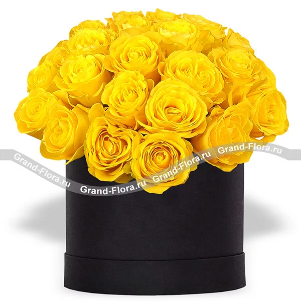 39 роз: роза желтая - 39 шт., коробка круглая (20*20) - 1 шт., оазис.