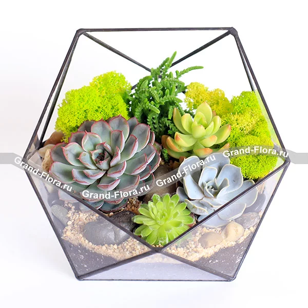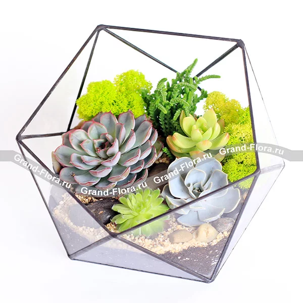 Стандартный: флорариум, эхеверия, молодило, седум, крассула.